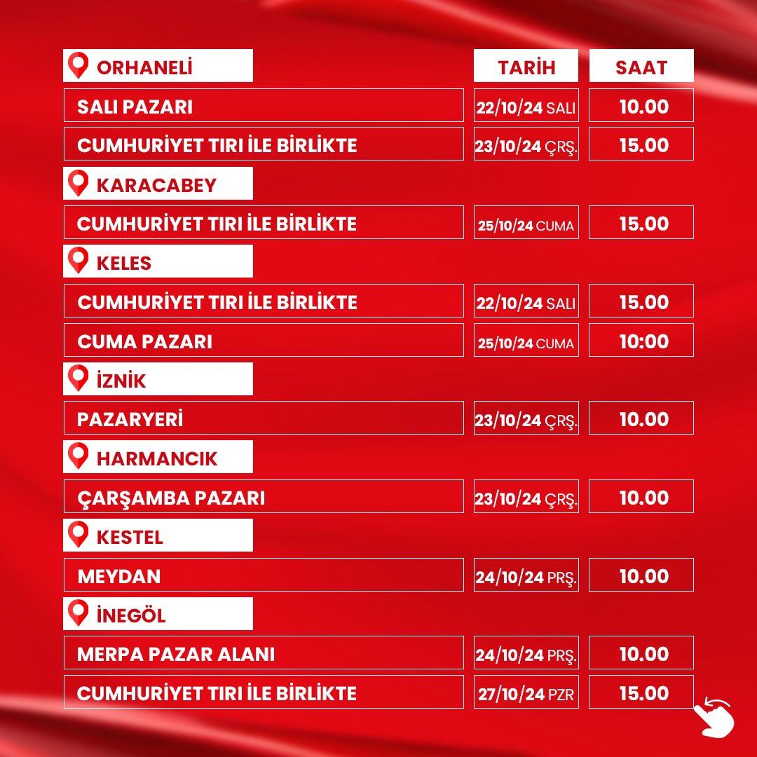 Vatandaşlar, 23 Ekim Çarşamba, 24 Ekim Perşembe ve 25 Ekim Cuma günleri saat 08.00-12.00 ile 13.00-17.00 saatleri arasında Osmangazi Belediyesi merkez binası önünde kurulacak olan standartlardan dağıtılacak olan Ata posterlerini ücretsiz olarak alabilecek.