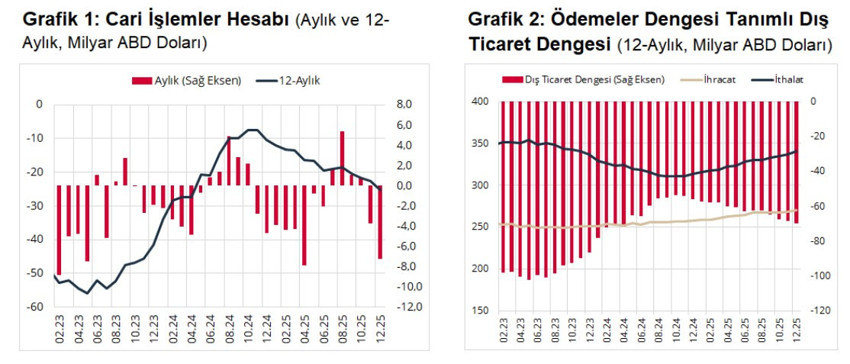 AA Finans’ın “Aralık 2025 Ödemeler Dengesi” verilerine ilişkin beklenti anketine göre, ekonomistler, cari işlemler hesabının 5 milyar 362 milyon dolar açık vereceğini öngörmüştü.