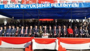 Bursa’da Atatürk Caddesi’nde tören gerçekleştirildi.