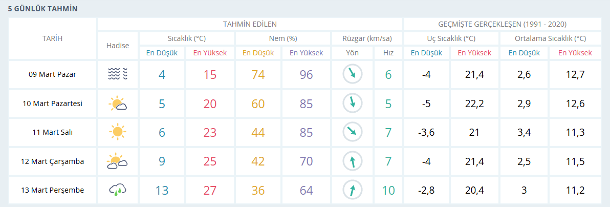 İşte Meteoroloji Genel Müdürlüğü’nden yayınlanan Bursa’nın 5 günlük hava tahmin raporu: